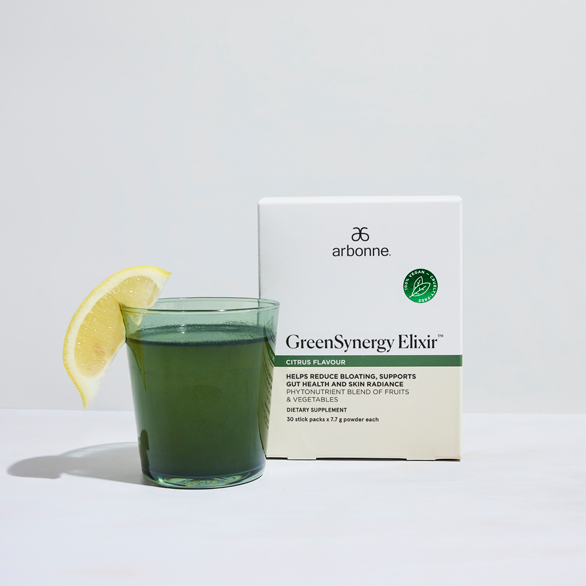 Your green gut glow on the go. Create synergy from the inside out with a drinkable smart nutrition + skincare routine that features your greens, prebiotics, digestive enzymes, and a vegan collagen builder all in one delicious citrus-flavored scoop. Supports digestion, energy, radiant skin, and overall wellness every single day. Vegan, gluten-free, and formulated with clean, plant-based ingredients you can trust.